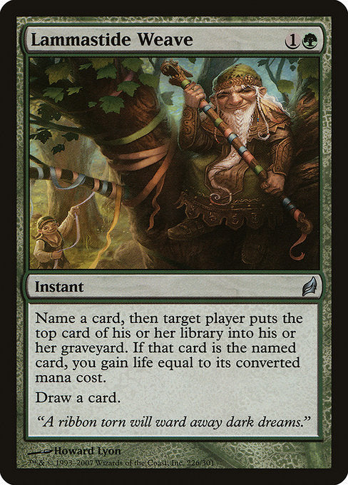 Choose a card name, then target player mills a card. If a card with the chosen name was milled this way, you gain life equal to its mana value.