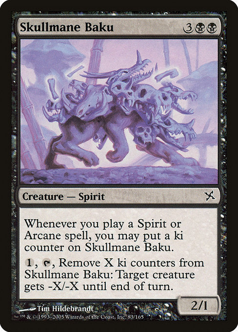 Whenever you cast a Spirit or Arcane spell, you may put a ki counter on Skullmane Baku.